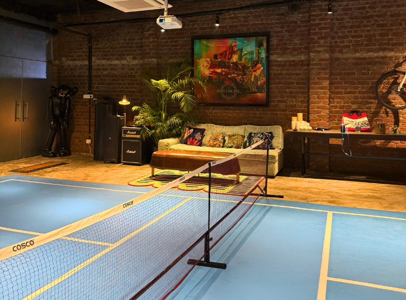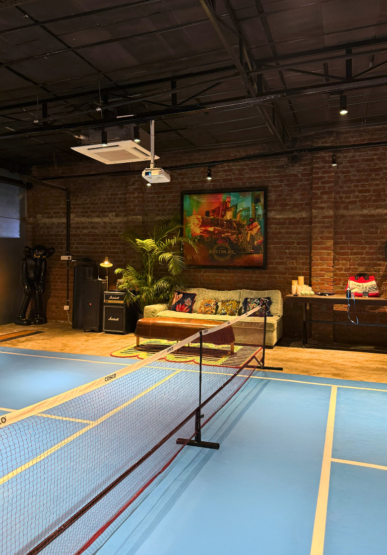 In the heart of Gurugram, this two-bedroom artistic retreat is designed for friends, families, and couples to pause and rediscover the joy of fun. From lively games in the indoor pickleball court to cosy movie nights, every moment here feels special.